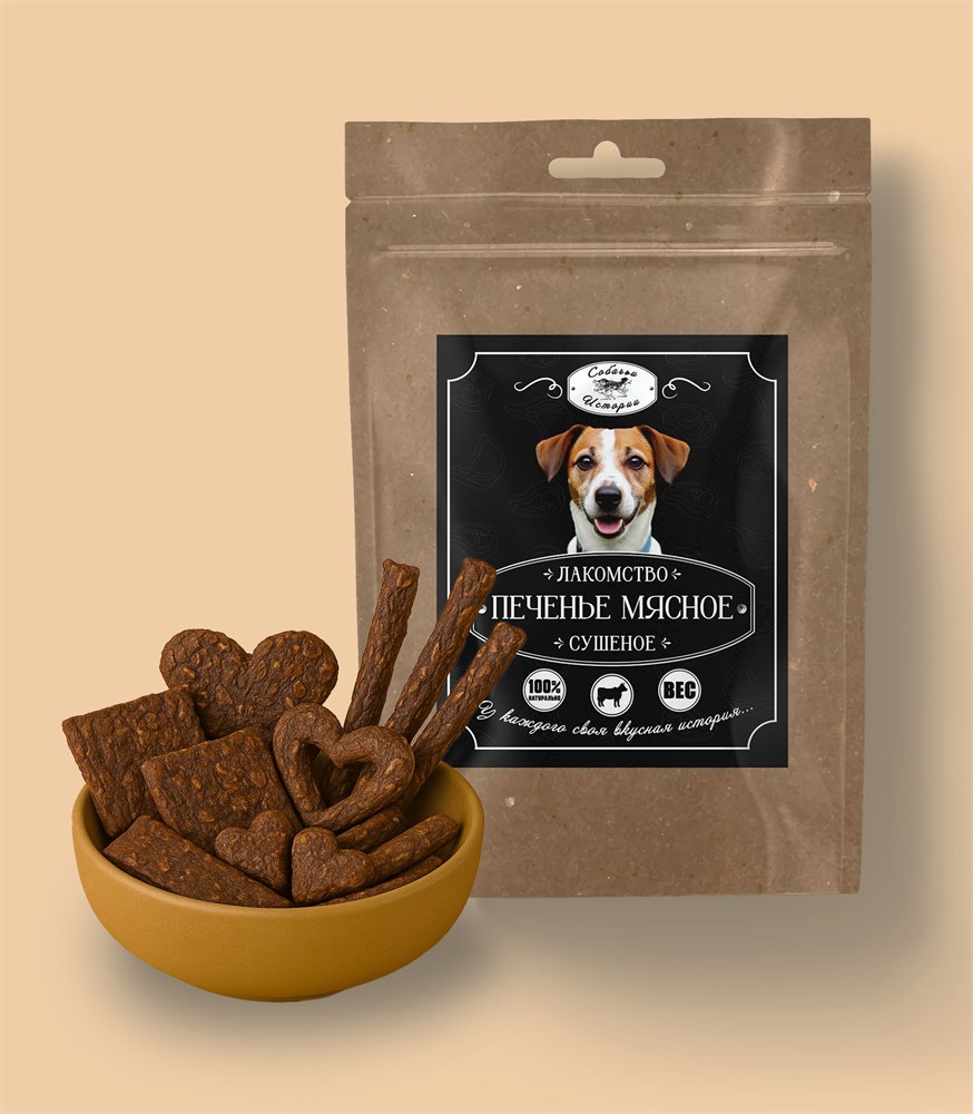 Печенье мясное Легкое Говяжье 50г 105*185 Крафт окно